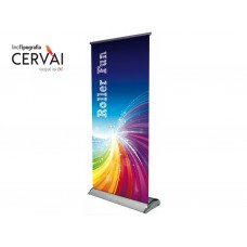 rollup monofacciale autoavvolgente in alluminio con placche laterali cromate. Sacca per il trasporto..